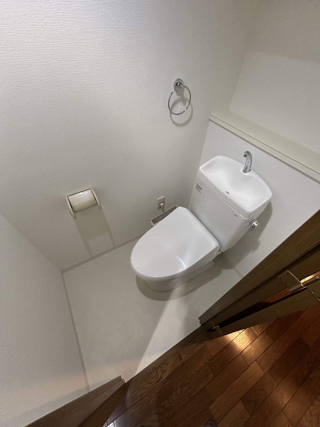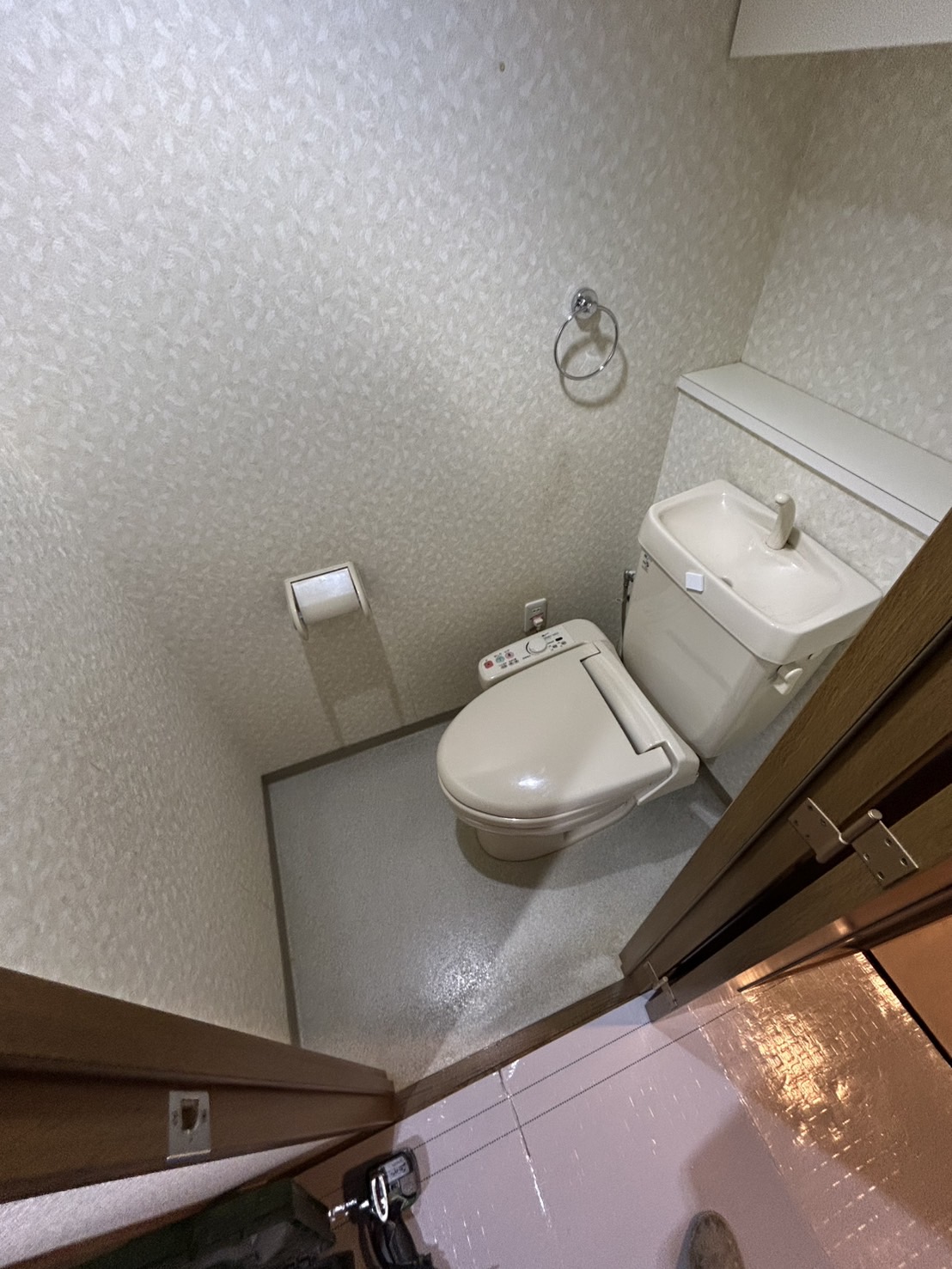 トイレの交換に合わせて、壁紙(クロス)と床(クッションフロア)も張り替えました。