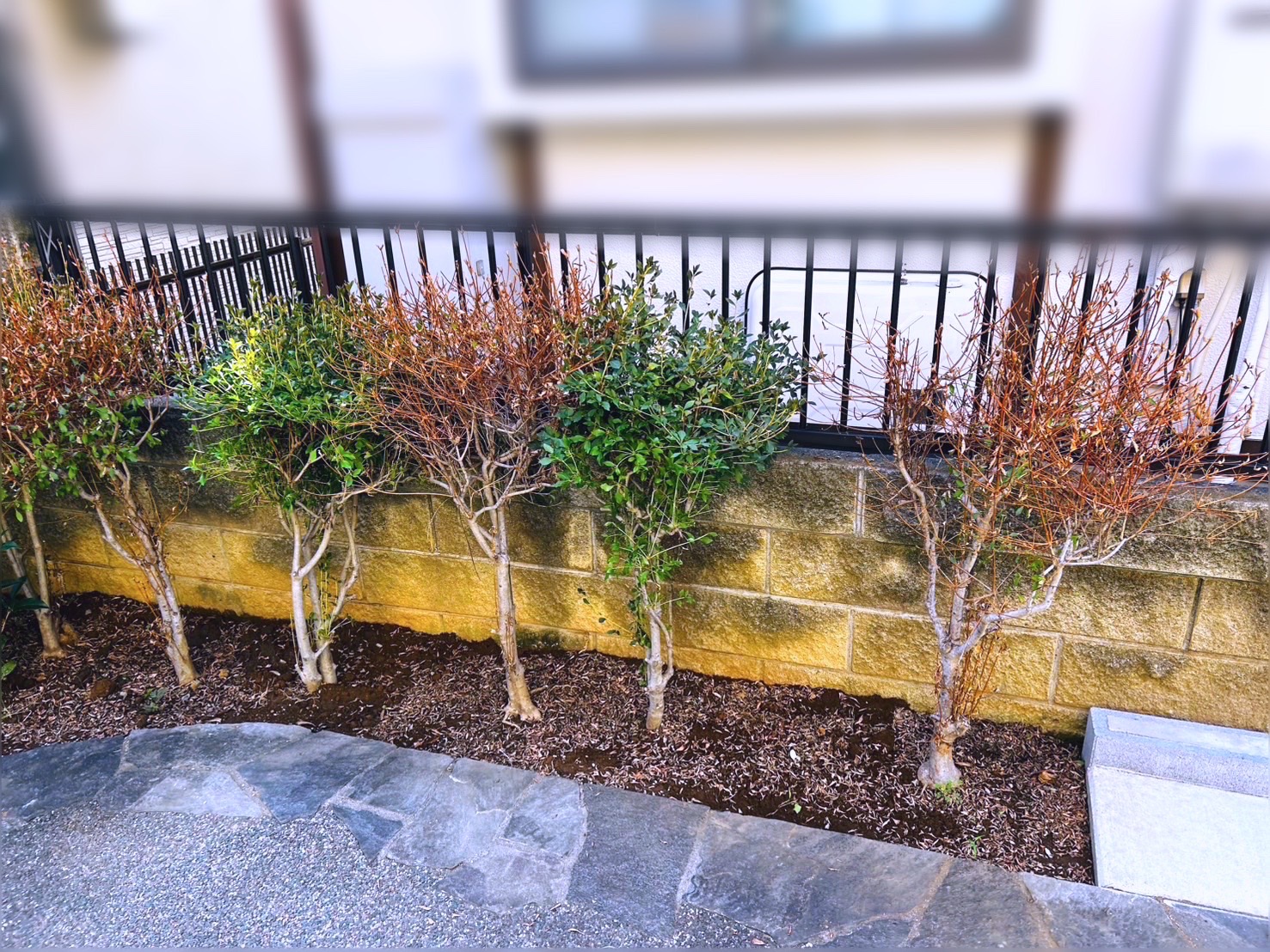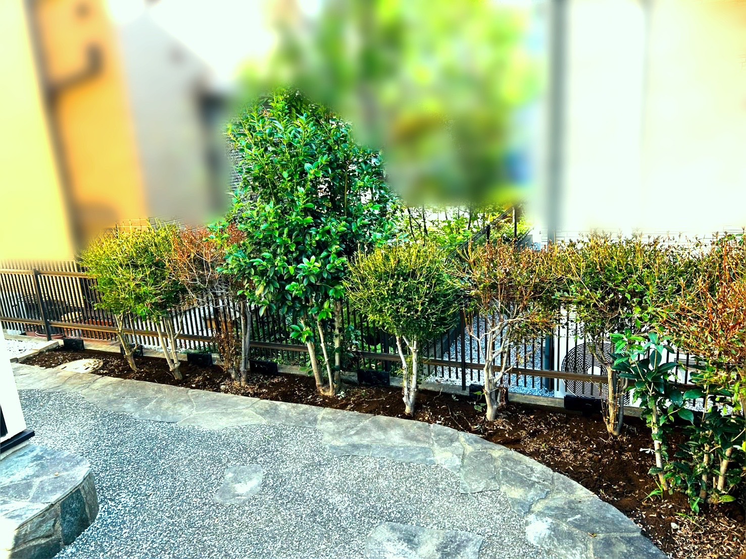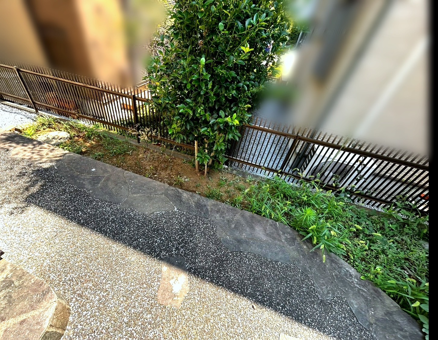 また、隣地側の植栽スペースはブロック+フェンスで仕上げ直し、車の乗り降りがしやすく、雑草や植栽管理の手間も軽減。