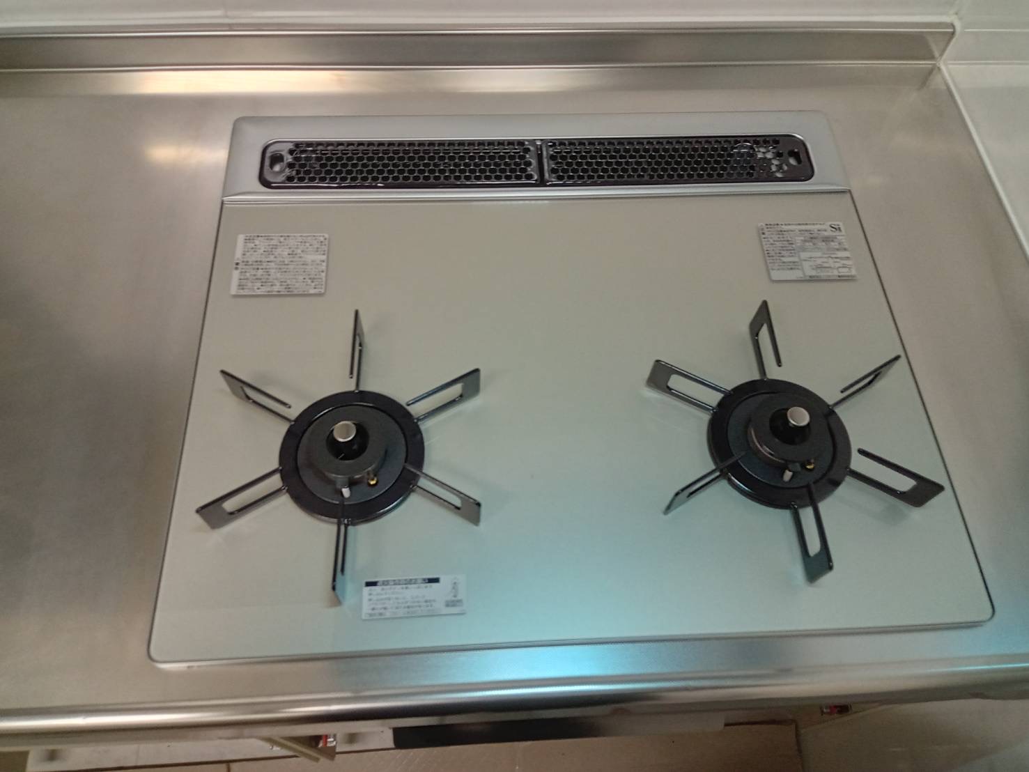 ムーンシルバーのガラストップと無水両面焼グリルを備えた使いやすく機能的な2口コンロ♪
